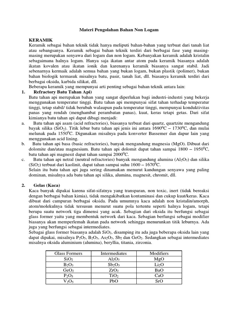 Pengetahuan bahan logam dan bukan logam mutlak harus dimiliki oleh. Pertimbangannya adalah, lokasi australia relatif dekat dengan indonesia. bahan bukan logam adalah bahan yang tidak mengandungi unsur logam didalamnya. Padahal logam mulia, bukan hanya emas. Logam adalah unsur yang memiliki sifat mengkilap dan umumnya merupakan penghantar listrik dan penghantar panas yang baik.