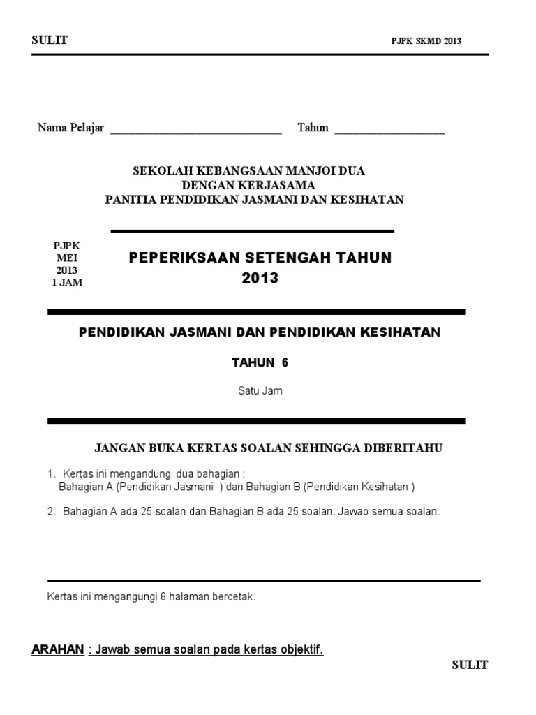 Soalan Pj Tahun 6 / Soalan Pendidikan Jasmani Ppt Tahun 6 / Koleksi karangan bahasa melayu, bahasa inggeris (english essays), bahasa arab: